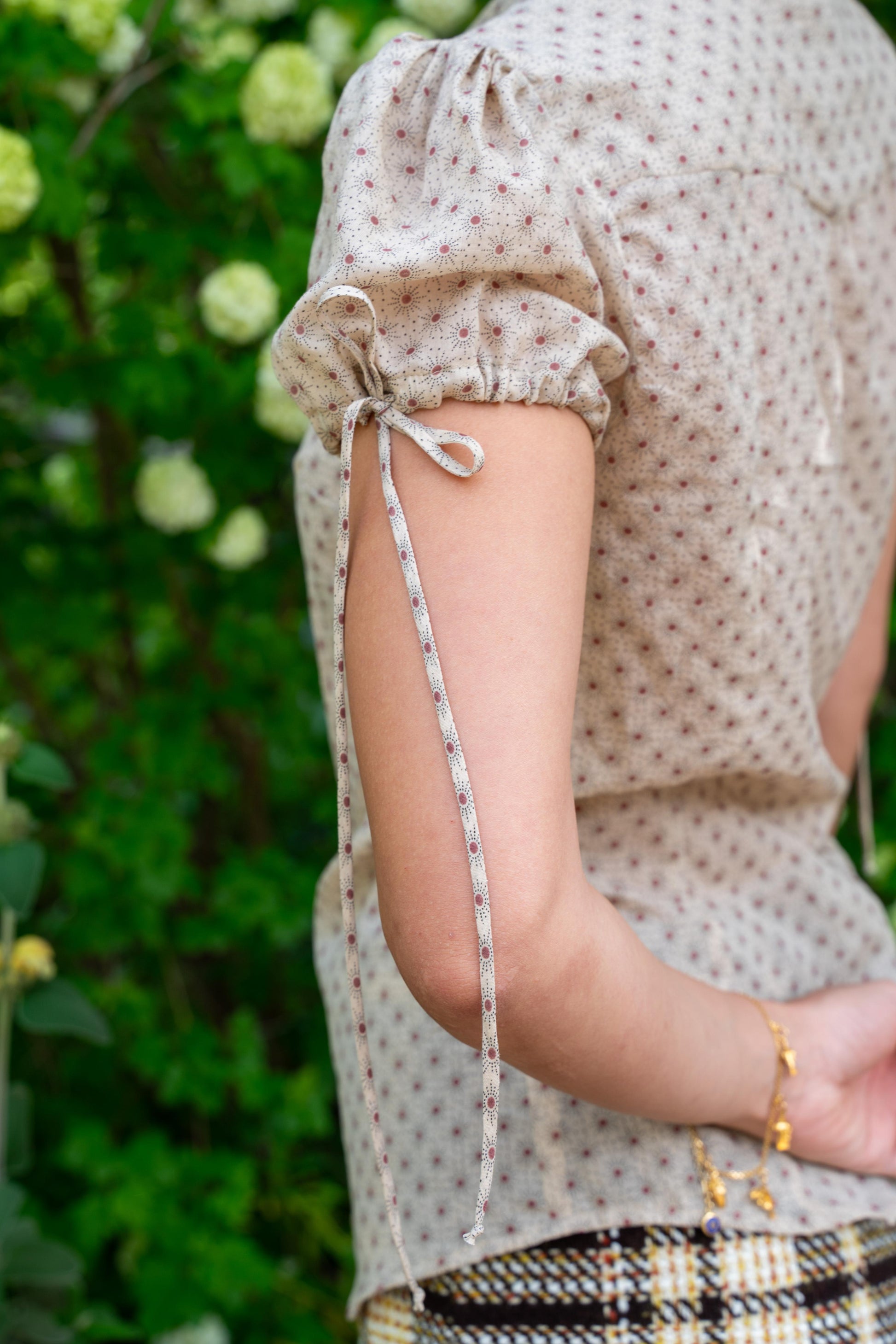 Inspired by vintage style and classic Western shirts, with a babydoll style gathered sleeve and elongated ties. Semi-tailored fit. Designed for those who layer, mismatch and embellish. Semi-sheer, summery, breathable.